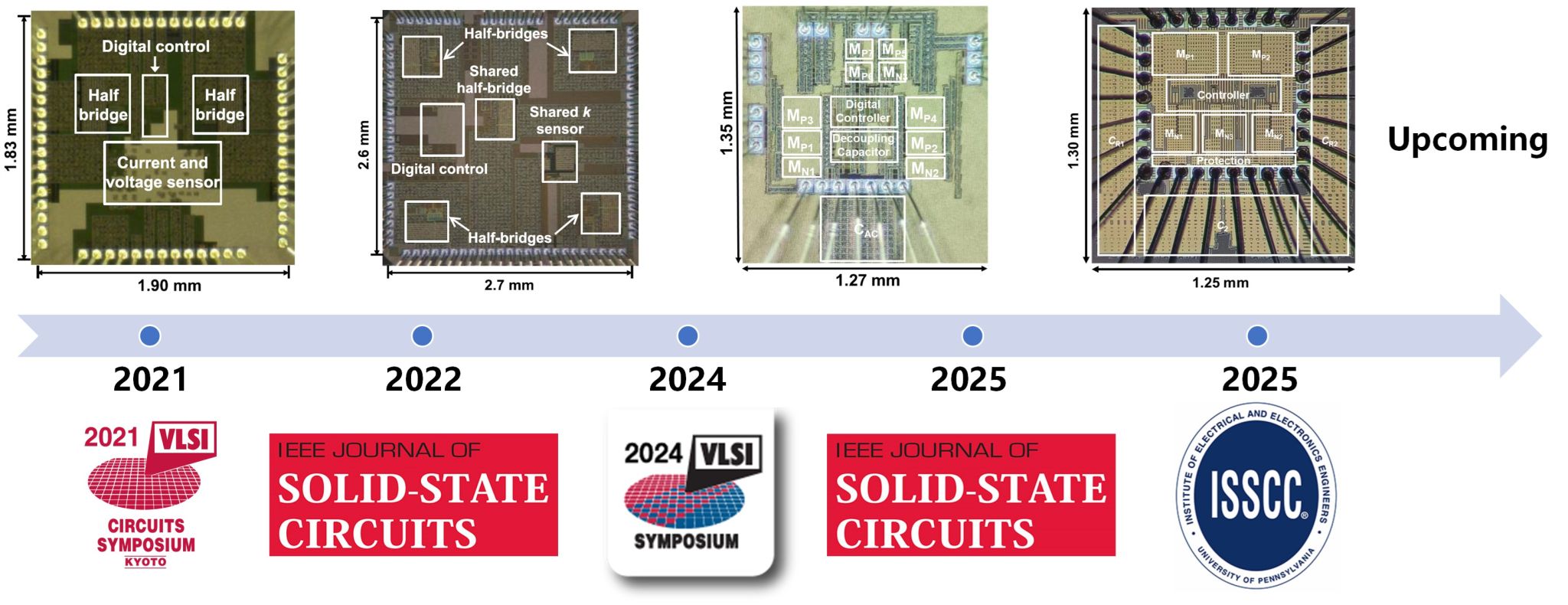 The International Solid-State Circuits Conference (ISSCC) is the top conference in the field of integrated circuit, also known as the “Olympics of Chips”. Since its inception in 1953, ISSCC has been the premier venue for the introduction of the world’s most advanced solid-state circuit technologies. These include the world’s first integrated analog amplifier chip (Fairchild Semiconductor), the first 8-bit microprocessor chip (Intel), the first 32-bit microprocessor chip (Intel), the first 1GB memory DRAM chip (Samsung), and the first multi-core processor chip (Intel).