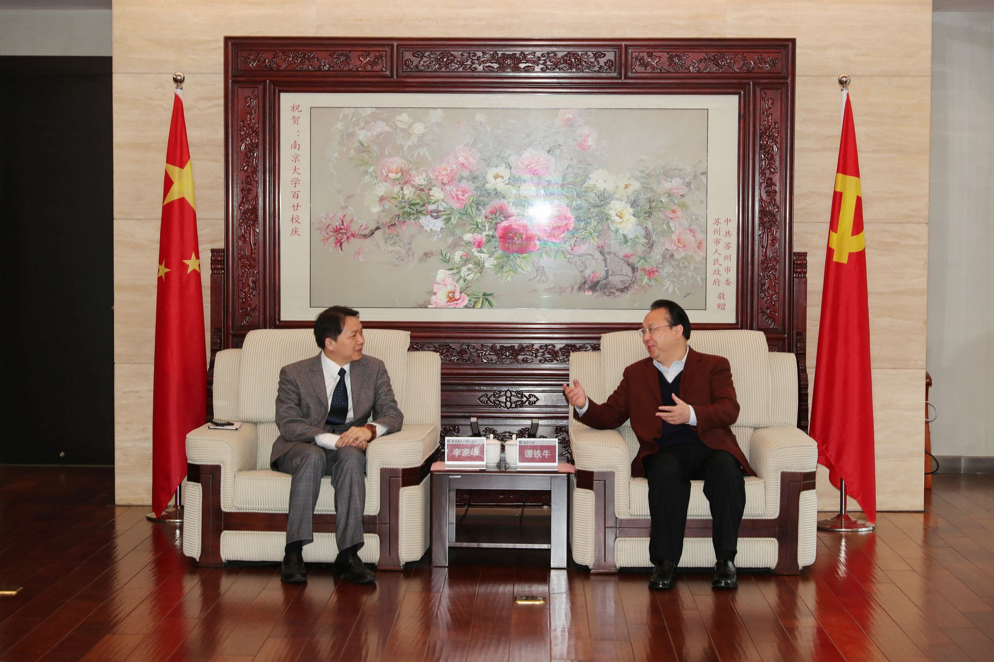 On March 24, Tan Tieniu, Secretary of CPC NJU Committee, met at Xianlin Campus with Terry Li, Director of the SHKP-Kwoks Foundation, and Tandia Wan, Programme Director of the Foundation.