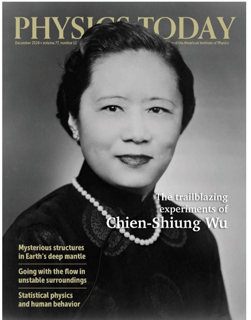 On December 1, 2024, Physics Today, the core journal of American Institute of Physics, published "Chien-Shiung Wu's trailblazing experiments in particle physics" co-authored by Chon-Fai Kam, Cheng-Ning Zhang and Da Hsuan-Feng. The editorial board of Physics Today chooses Chien-Shiung Wu’s photo as the cover of the journal's 2024 year-end issue. This initiative by Physics Today, the world's leading journal of physical sciences, highlights the profound impact that Chien-Shiung Wu has had on science.