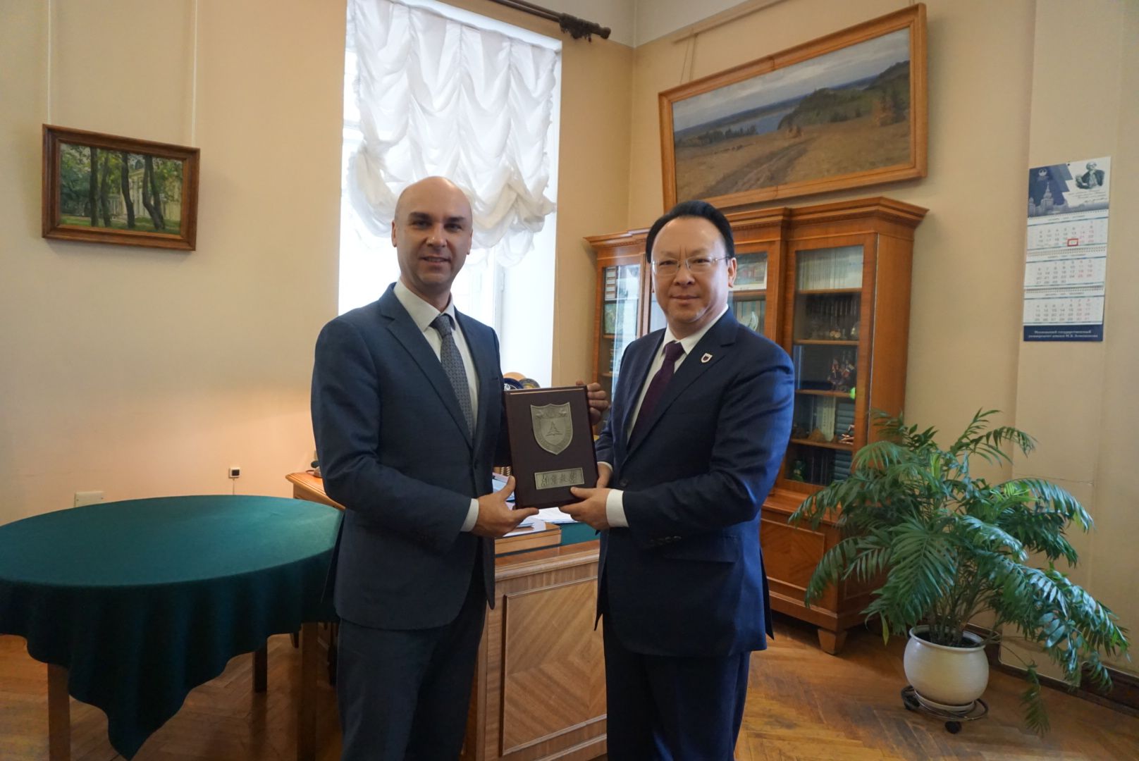 On October 25, the delegation visited St Petersburg State University in company with Zhang Xiaoqing, Chinese Deputy Consul General in St. Petersburg. Tan Tieniu held talks with Nikolay Kropachev, rector of the university, and Yuri Matiyasevich, academician of St. Petersburg Department of the Steklov Mathematical Institute of the Russian Academy of Sciences. Both sides agreed to advance collaboration in the disciplines of mathematics, chemistry, and geography.