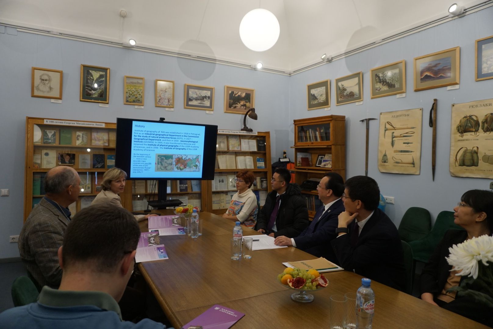 In the morning of October 26, Tan Tieniu visited the Russian Academy of Sciences and held in-depth conversations with Vice President Vladislav Panchenko and other representatives. Both sides assented to boosting collaboration in scientific research under the framework of “the Belt and Road” initiative and the BRICS cooperation mechanism. Later, the delegation went to the Institute of Geography of the Russian Academy of Sciences and communicated with its director Olga Solomina.