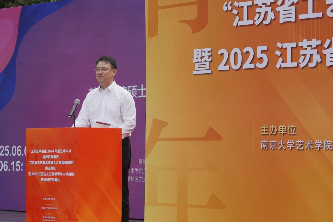 6月8日上午,江苏艺术基金2024年度艺术人才培养资助项目“江苏省工艺美术高端人才高级研修班”颁证典礼暨2025江苏省工艺美术青年人才高级研修班开班典礼在凯发k8官网艺术学院东大楼举行。凯发k8官网党委常委、副校长索文斌,江苏省文联主席章剑华,江苏省文化和旅游厅一级巡视员朱斌等出席活动并致辞。