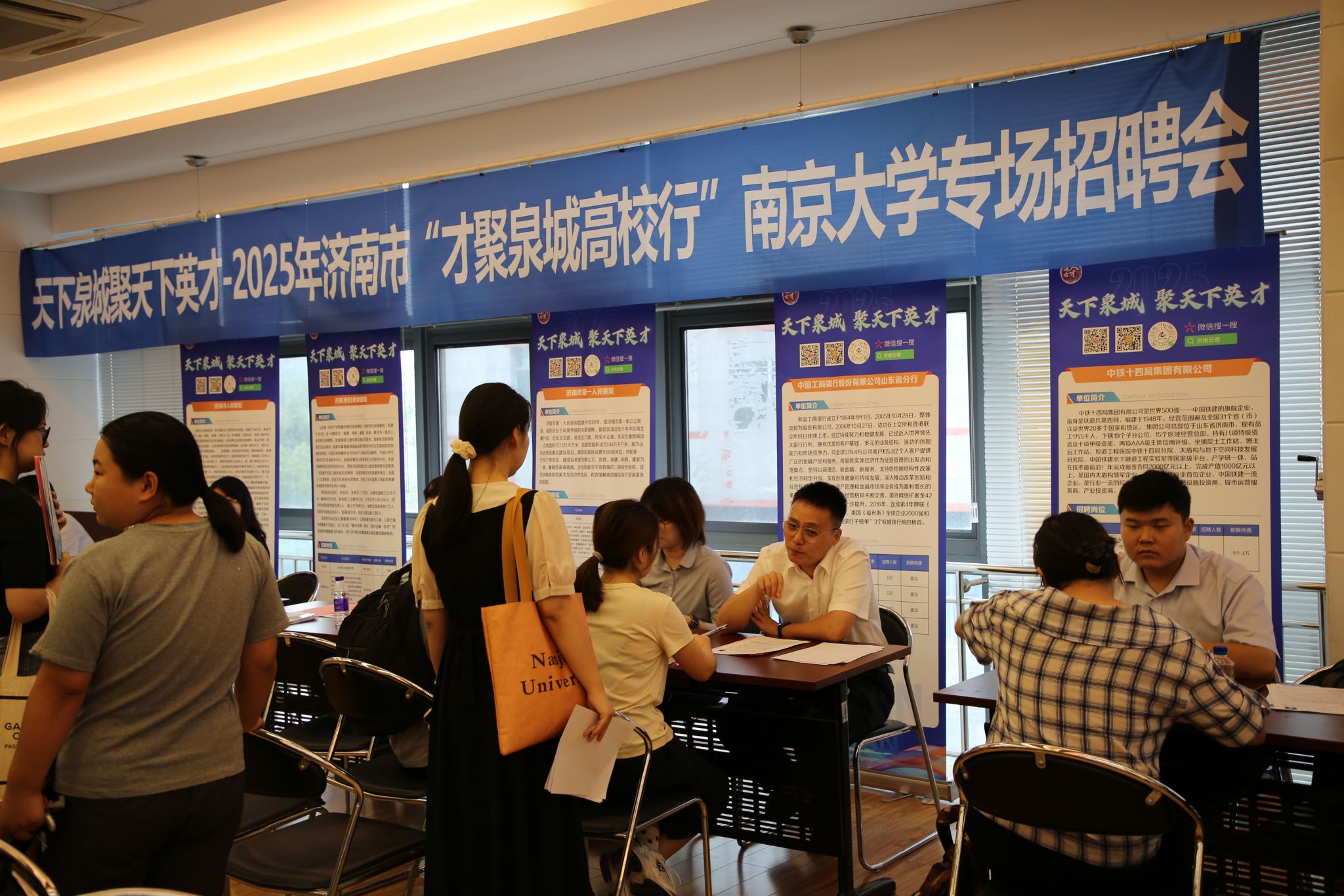 同期举办的组团招聘会,56家用人单位参会,包括空天信息大学(筹)、山东财经大学、山东省农业科学院、济南中科核技术研究院、济南市人民医院、中铁十四局、山东电工电气集团、工商银行山东省分行、中信证券等重点单位,提供近2000个工作岗位。活动现场参会同学200余人次,现场学子积极投递简历,与招聘单位深入沟通互动,氛围活跃且热烈。