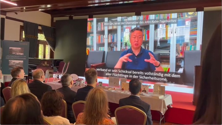 On August 15, marking the 80th anniversary of Japan's announcement of unconditional surrender in World War II, the exhibition My Neighbour John Rabe opened at Yu Garden in Hamburg. The event was organised by The Diaries of John Rabe and the City of Peace team from Nanjing University. Among the guests were Cong Wu, Consul General of the Consulate-General of China in Hamburg, and Christopher Reinhardt, great-grandson of John Rabe, alongside representatives from both Germany and China.