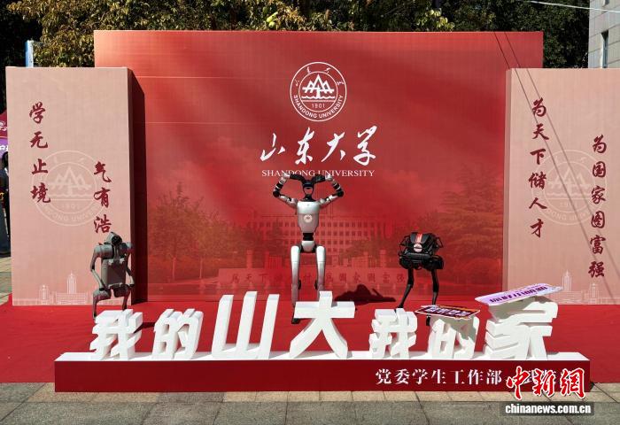 人形机器人、四足机器人(机器狗)亮相山东大学中心校区迎新现场。高艺芯 摄
