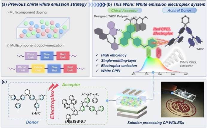4新型CP-TADF高分子设计策略和CP-WOLED器件。