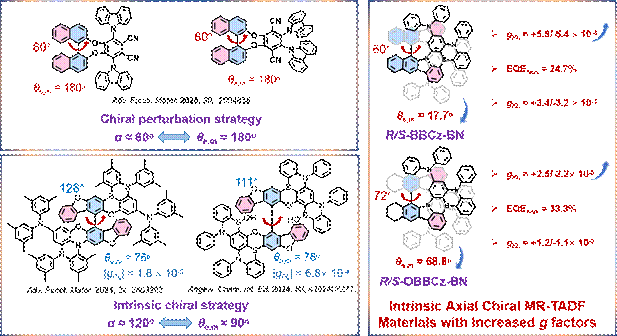 目前提高g因子的方法主要是增加手性基团在分子前线轨道分布的占比,从而提高分子跃迁磁偶极矩,而对跃迁偶极矩之间的夹角(θe,m)关注相对较少。