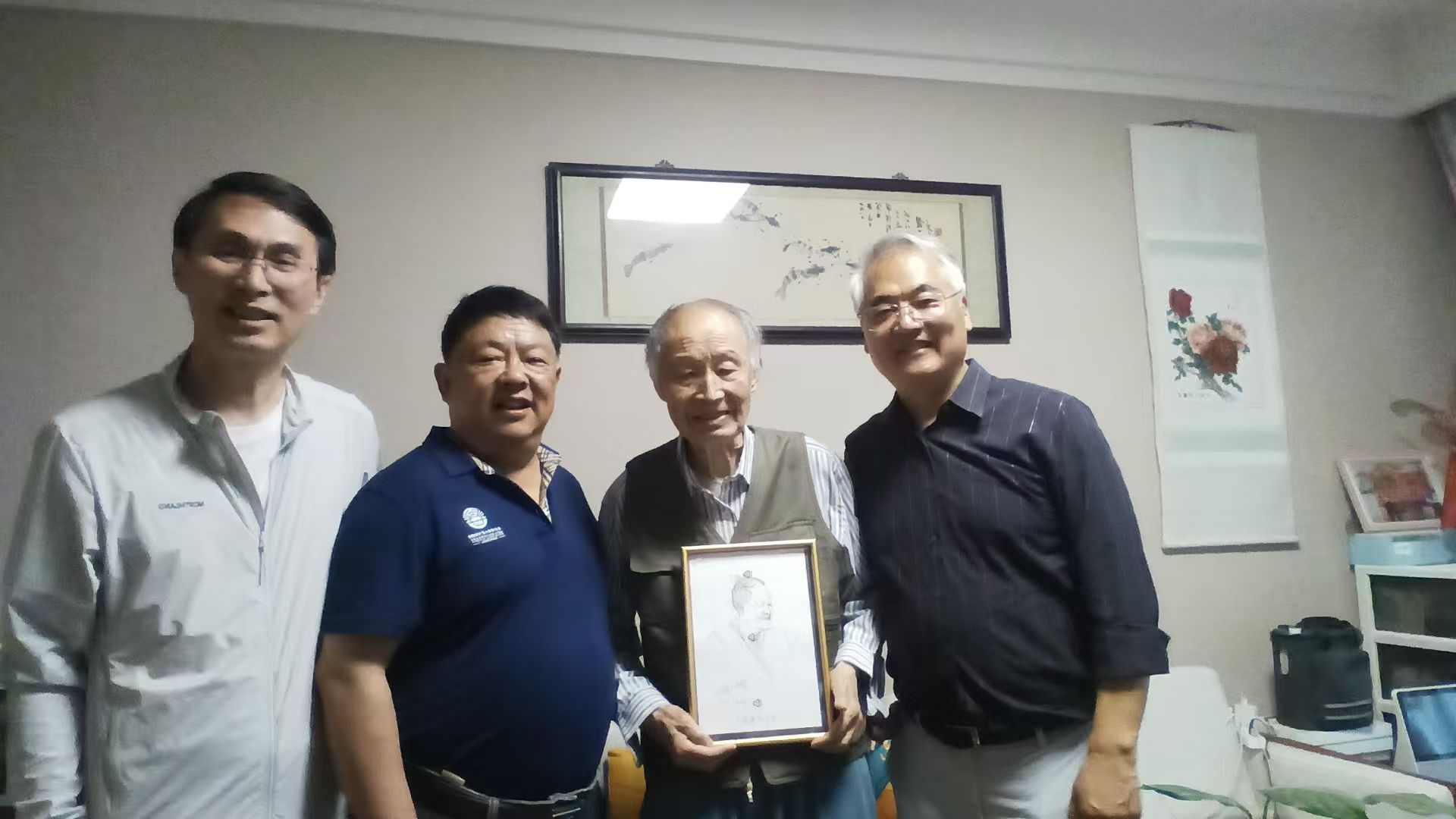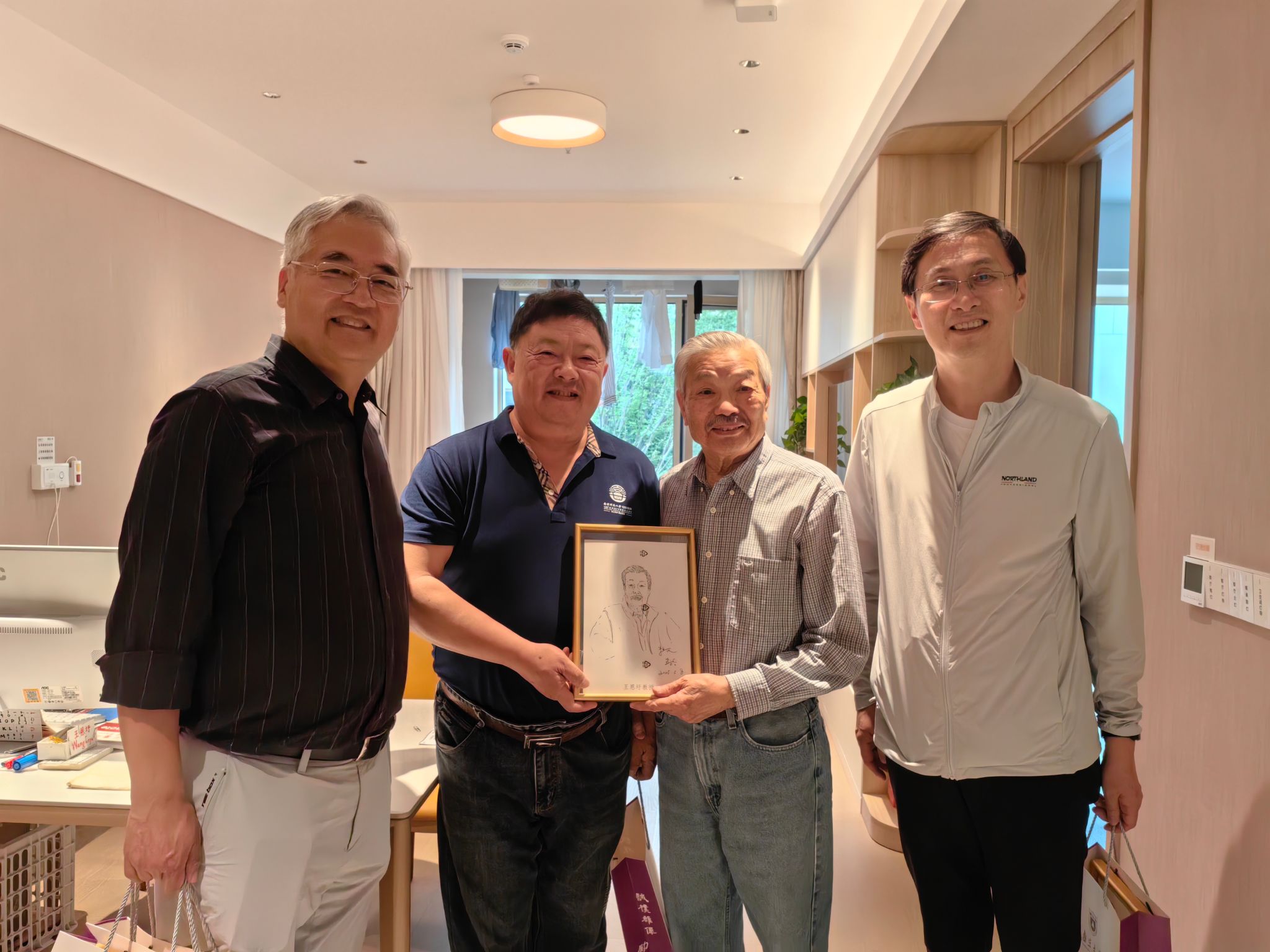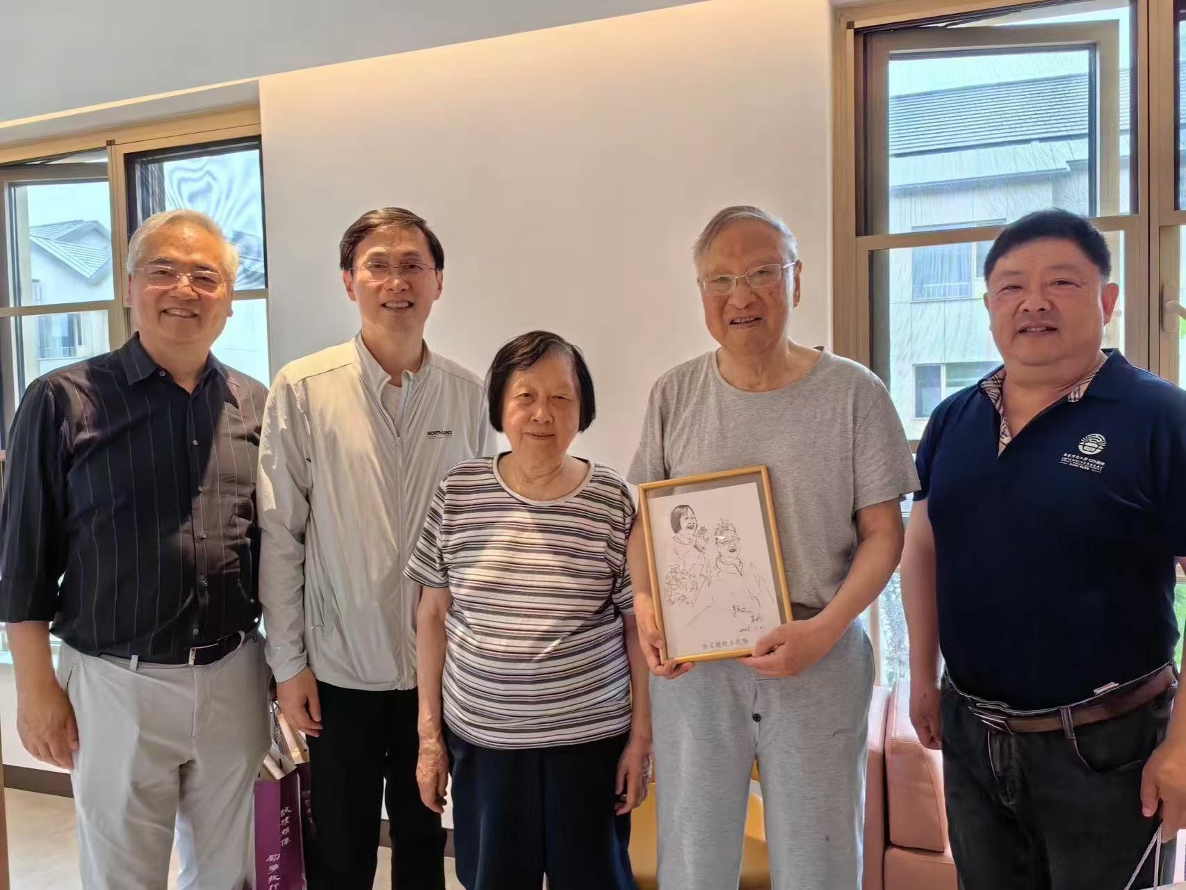 5月15日下午,吴珩、陈伟与朱亚文等一行专门看望了入住苏园的几位知名教授并为其赠送钢笔画像。